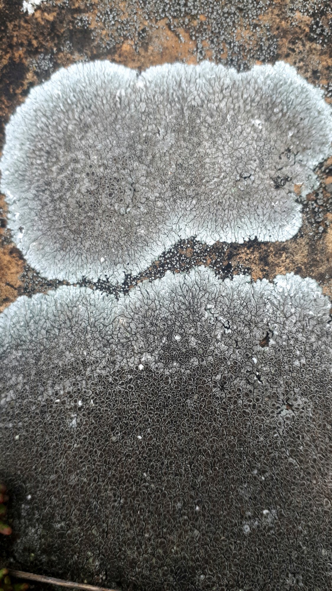 Les 2 morphotypes se différencient sur la réaction K mais on est bien sur Lobothallia radiosa avec ce thalle gris verdâtre très plissé à la périphérie et ces nombreuses apothécies lécanorines regroupées au centre.