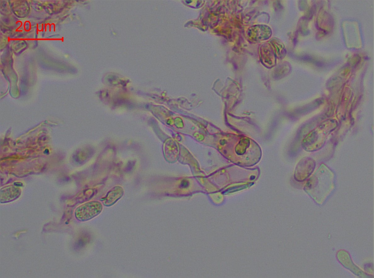 05 févr. 2023, 10:46Fouad a écrit : . J'ai observé sur le prélèvement, que Thierry Terradoc a bien voulu me confier, des cystidioles (visibles sur la photo de la spore) et deux "cystidesIl me semble que ce sont des basides.