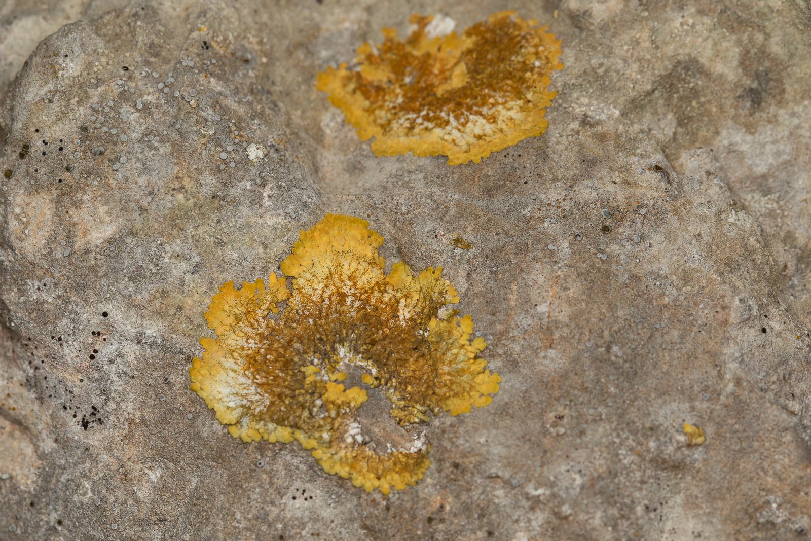 Je trouvais ce lichen vraiment joli avec ses couleurs dégradées. En recherchant sur internet, je trouve qu'il ressemble fort à Variospora aurantia. Qu'il peut être confondu avec Variospora flavescens, mais comme le mien a les lobes plutôt plats et qu'il est loin d'être concolore, je vote pour Variospora aurantia ?