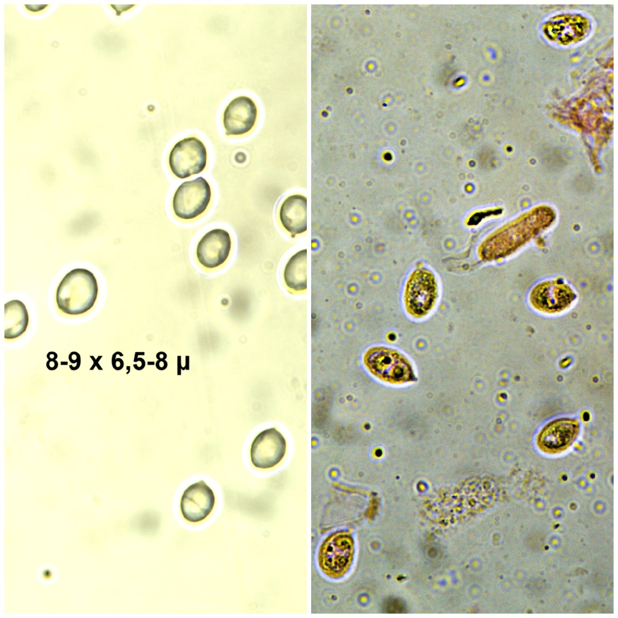 Il est généralement admis qu'une spore est globuleuse lorsque le Qm et compris entre 1 et 1,2 tout au plus (subglobuleuse alors). Ici, nous sommes à 1,25 sur les quelques spores visibles (7). Je ne sais pas quoi penser. Hervé voudra sans doute voir plus de spores ?