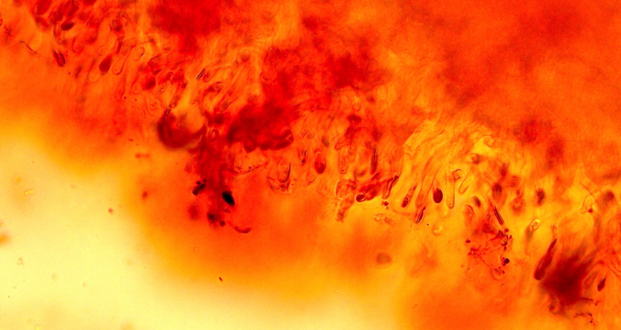 Alors, pour éviter que tu te décourages, je pense qu'il serait temps de te dévoiler en partie l'énigme. Tes billes orangées font partie des Dacrymycetales, ordre caractérisé par des basides en forme de diapason.