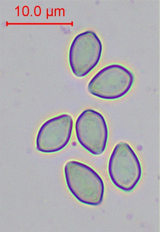Désolé Fouad. Je vois des spores elliptiques la plupart en vue de profil et des spores à contour hexagonal sur celles vues de face qui je te l'accorde sont moins nombreuses. Et d'autre part, la dimension des spores correspond à celles données par mycocharentes et MycoDB pour l'espèce envisagée de Deconica.