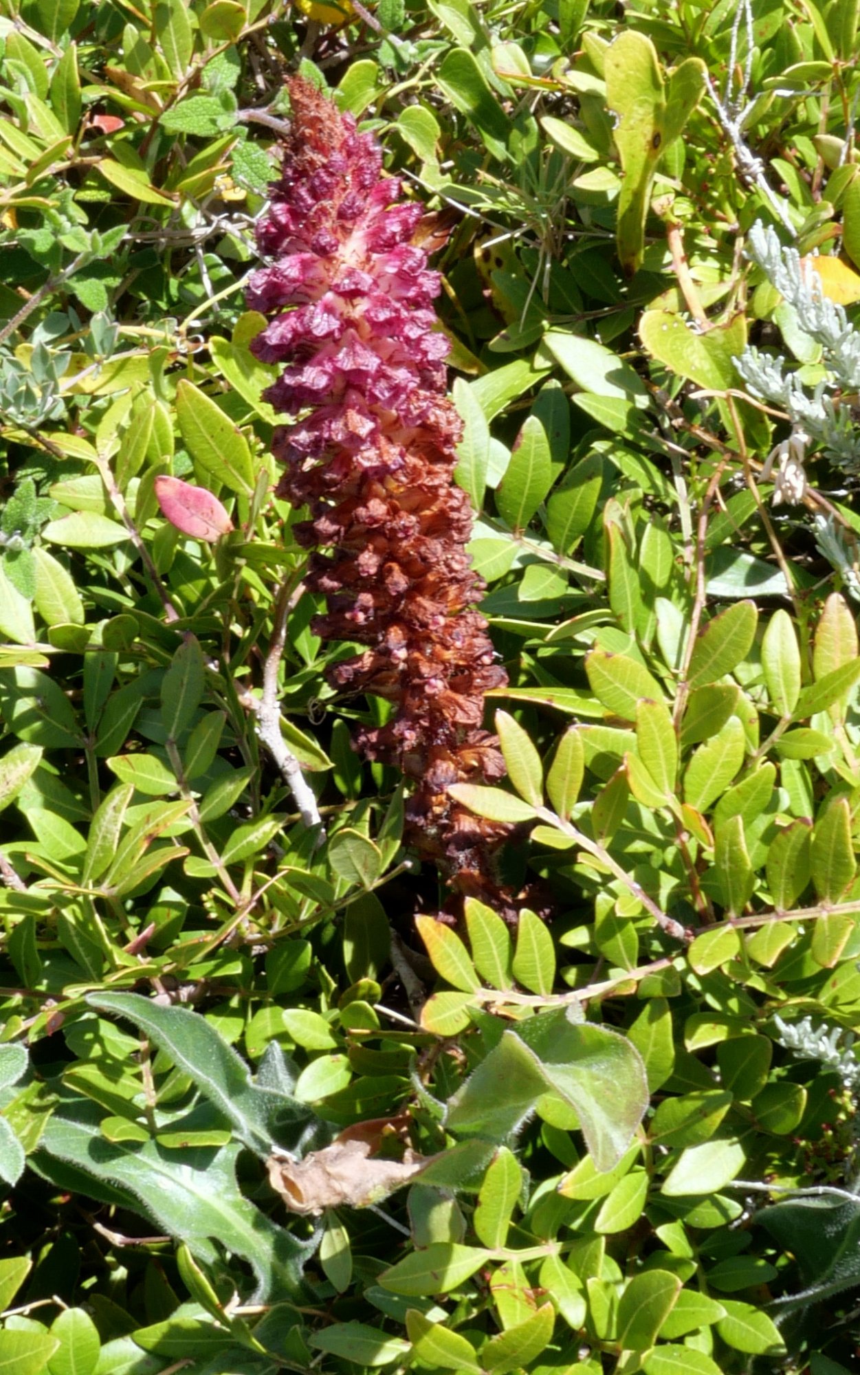 Je crois que vous l'avez tous. Il n'y a pas tellement d'orobanches rouges et l'hôte se voit sur les deux dernières photos*. Pour autant, pas très courante on dirait, en dehors du plateau calcaire de Bonifacio qui m'étonnera toujours : des vues à couper le souffle côté mer mais à l'arrière une lande aride, rabougrie, sans grand intérêt... sauf ici ou là des plantes qui ne poussent nulle part ailleurs en France ni même en Corse ! C'est comme une île dans l'île.