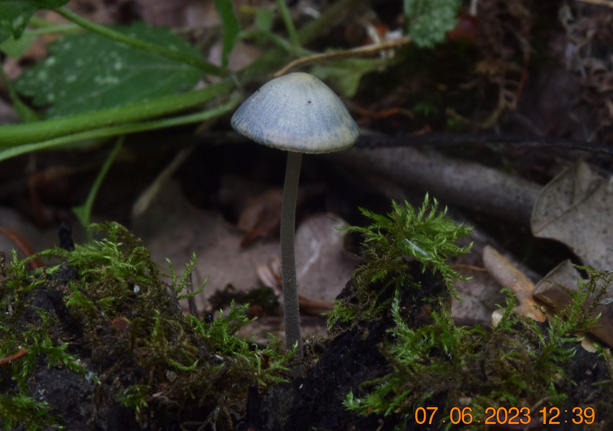Du bleu sur le chapeau, pied entièrement poudré, 20 à 25 lames atteignant le stipe, c'est macroscopiquement ce qui oriente vers M. a.