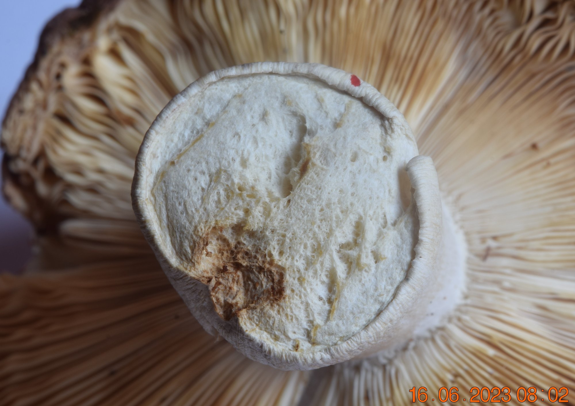 Une vue de coupe transversale du pied montrant ce qui justifie son nom d'espèce :