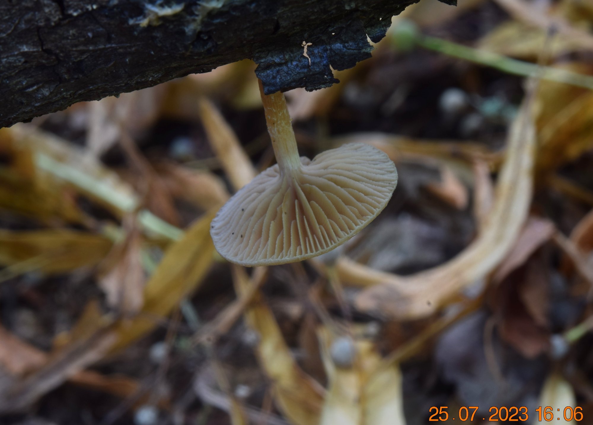 Exemplaire unique. Chapeau 2.2 cm, hygrophane, restes vélaires à la marge.
