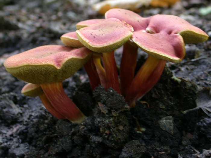 Je pense de suite a X. ferrugineus de par sont port globale son pied (remarquer ce pseudo reseau cotelé sur le haut du pied) mais la couleur certe tres peut rougeatre du pied m'enbarrasse.