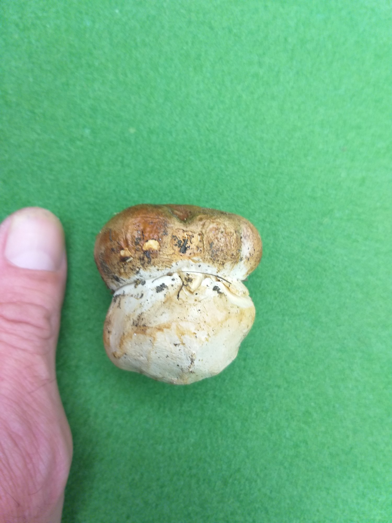 - pour en revenir au champignon, du moins à ce qu'on en voit, peut-être Catathelasma ??? Mais il faudrait les informations de base : taille, biotope, arbres notamment, odeur, saveur, consistance, vue en coupe, couleur de la sporée etc. tout est là : help/determination.