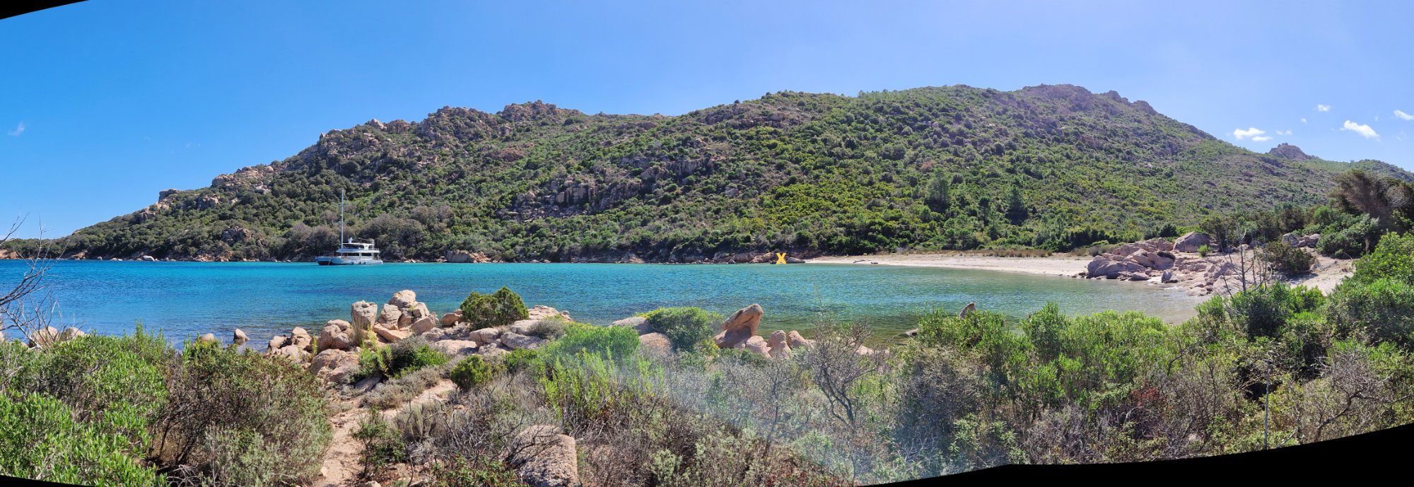 Je ne sais pas si elle perce les pierres comme l'indique un de ses noms vernaculaires mais elle s'y plait autant que dans le sable. Ici le 09/09/24, plage de Carpiccia (golfe de Porto-Novo), sur les rochers à 50 cm de l'eau (croix jaune) : Jplm