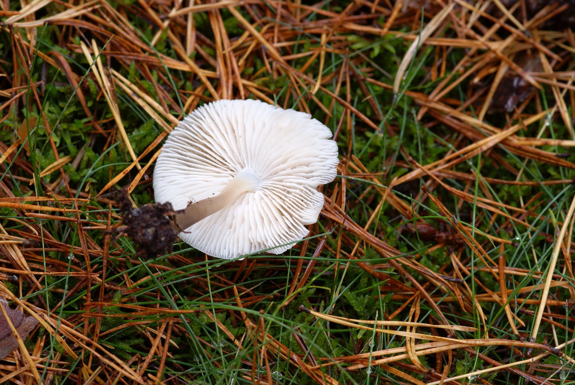 Je me suis orienté vers le genre Mycena, la silhouette et les caractéristiques semblent correspondre. Mais après, c'est loin d'être évident avec ce genre ...