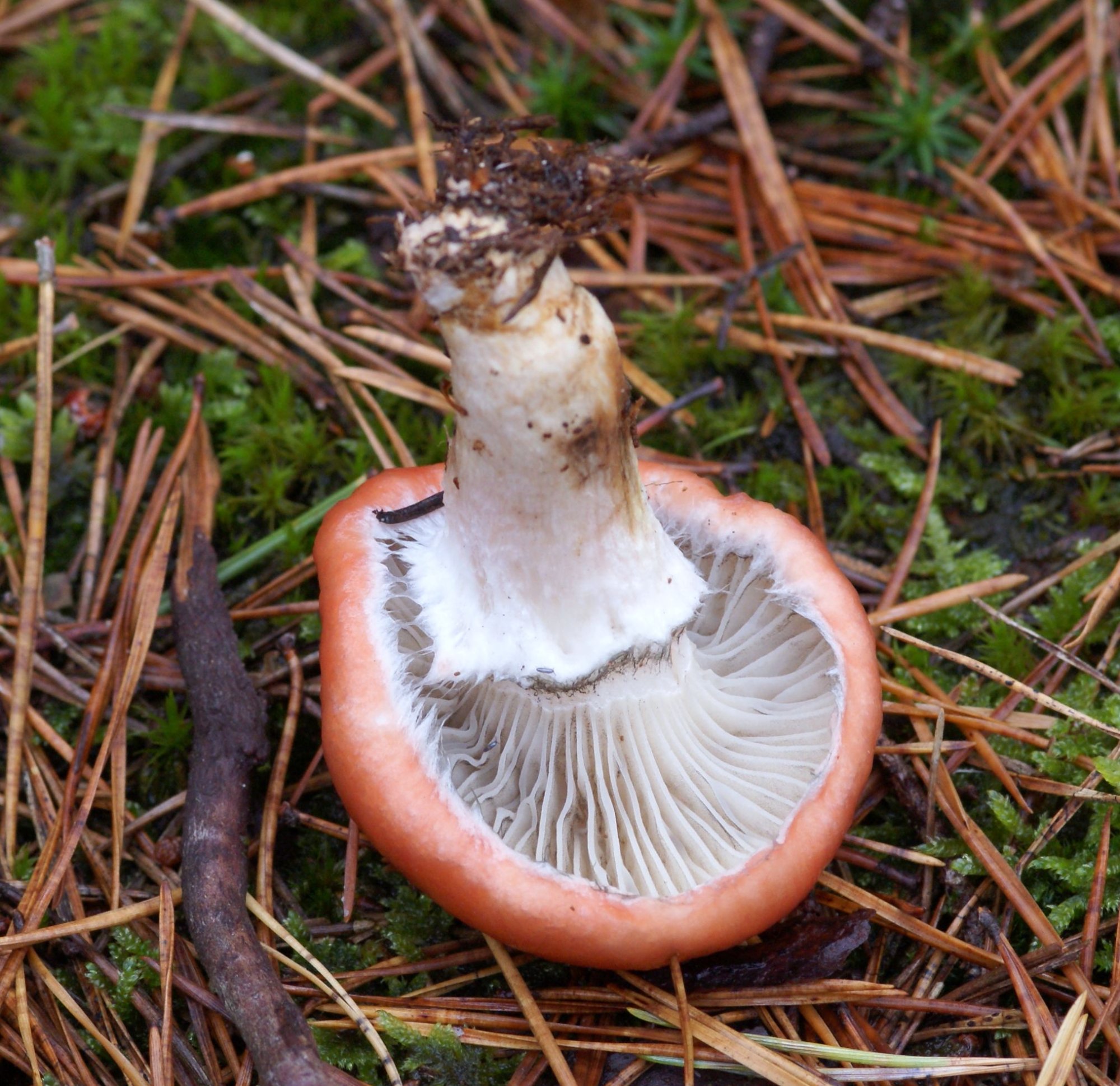 Habitat : en bordure de sentier sous pins, à proximité de Suillus bovinus.