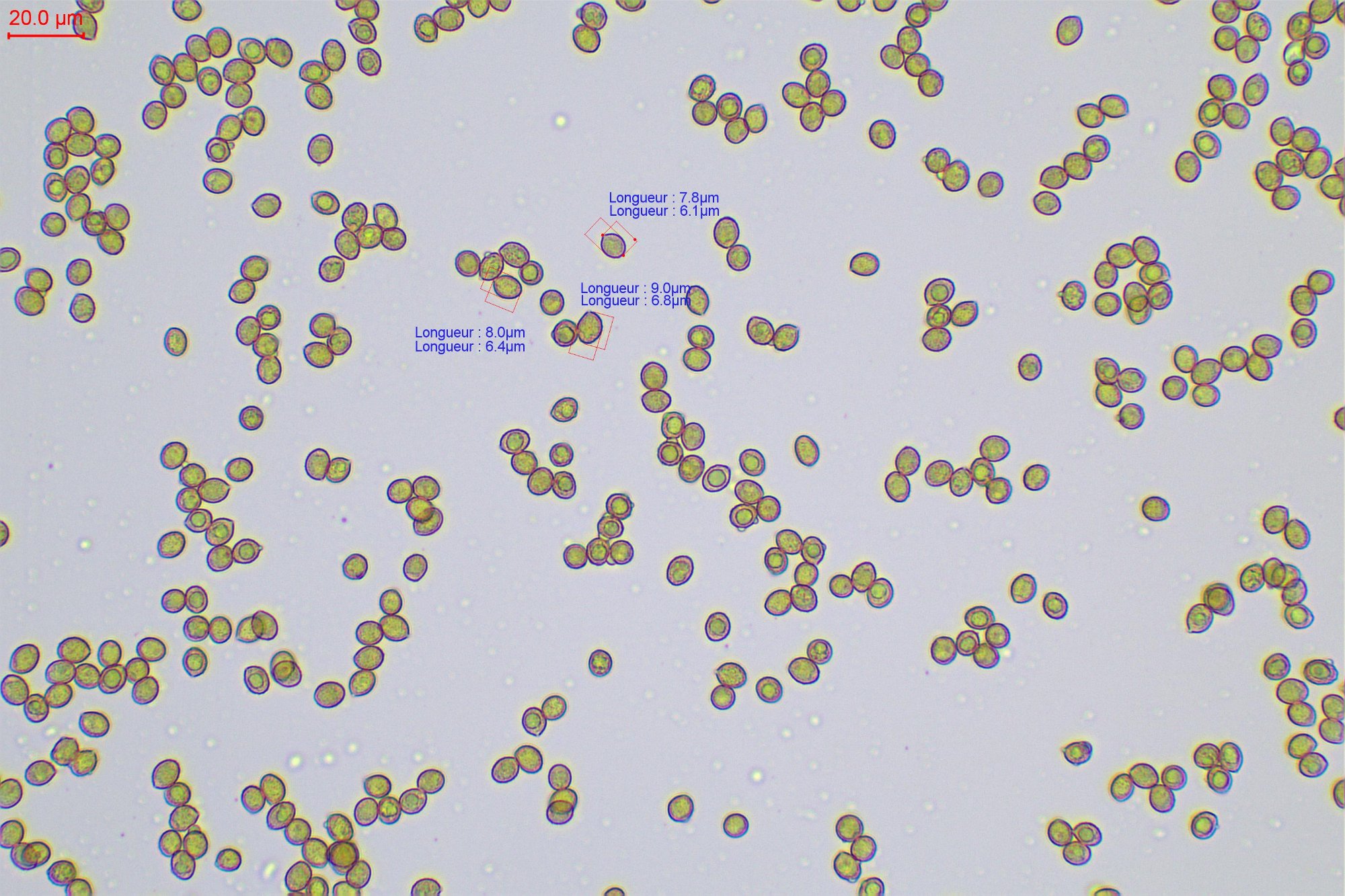 Chapeau ~ 4 cm. Pied grêle 5 x 0,5 cm Pas de viscosité. Odeur faible de rave. KOH brun sur la cuticule.
