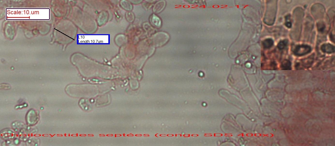 Arêtes ciliées (on le voit) et cheilocystides non diverticulées, septées, largeur jusqu'à 11 µ des basides (BK). Merci à tous, je renomme.