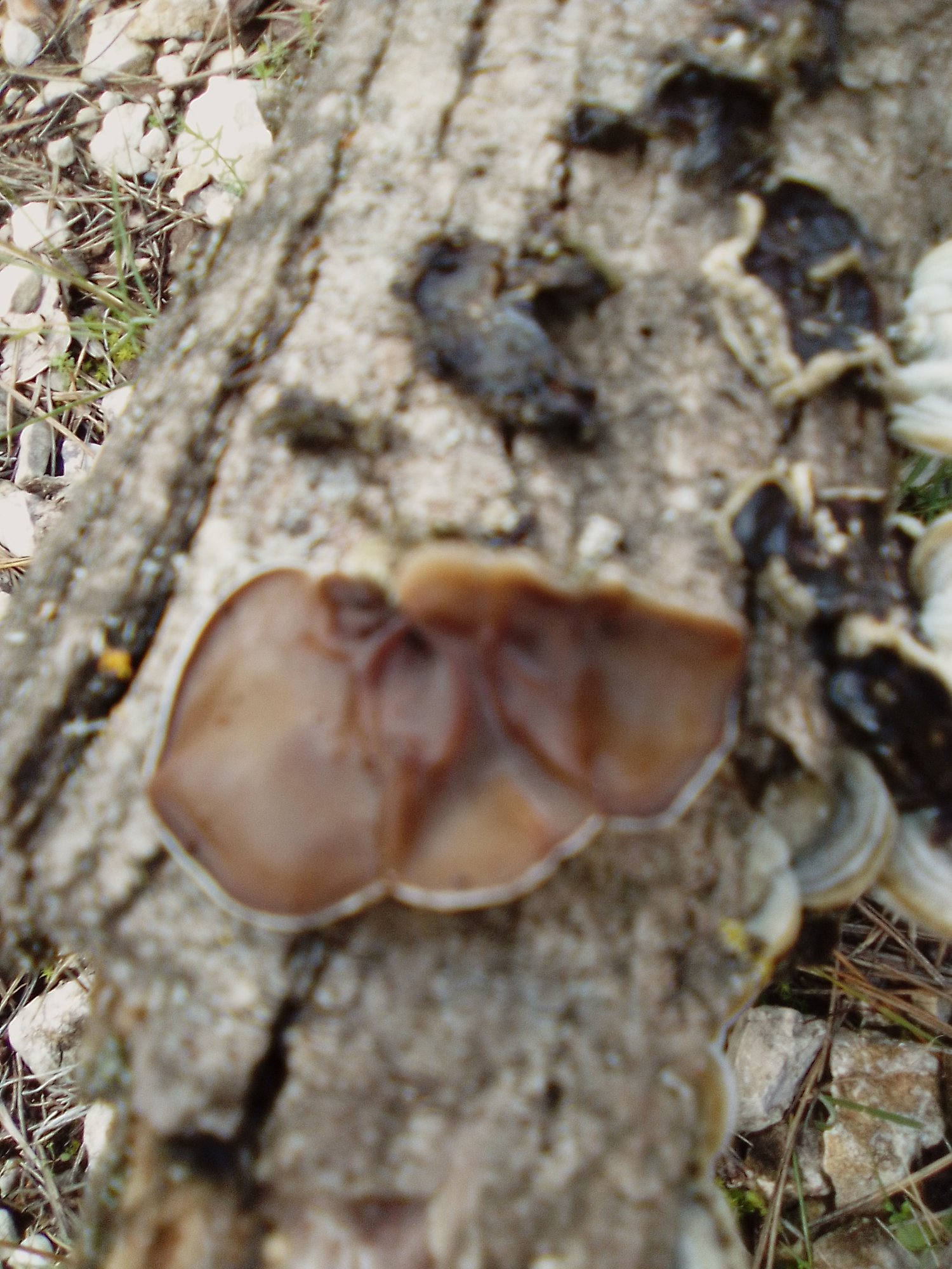 Ces champignons m'évoquent éventuellement Auricularia mesenterica, ou oreille mésentérique en français. Je les trouve cependant "trop bien zonés" sur le dessus.