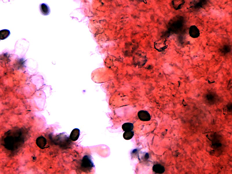 On donne souvent les spores comme pas spécialement foncées, mais d'après certaines photos, elles peuvent l'être (comme les tiennes).