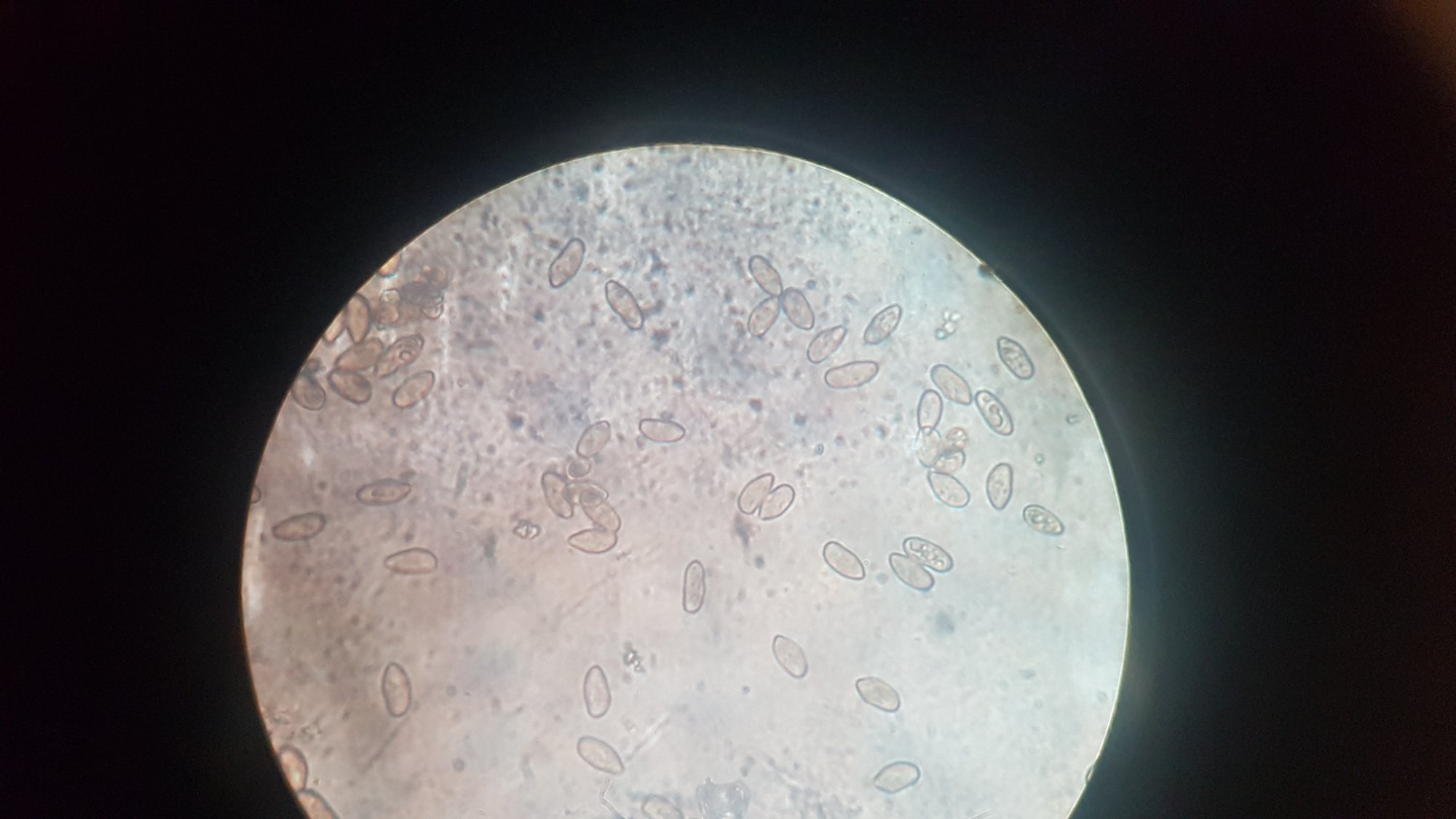 Spores amygdaliformes un peu anguleuses.