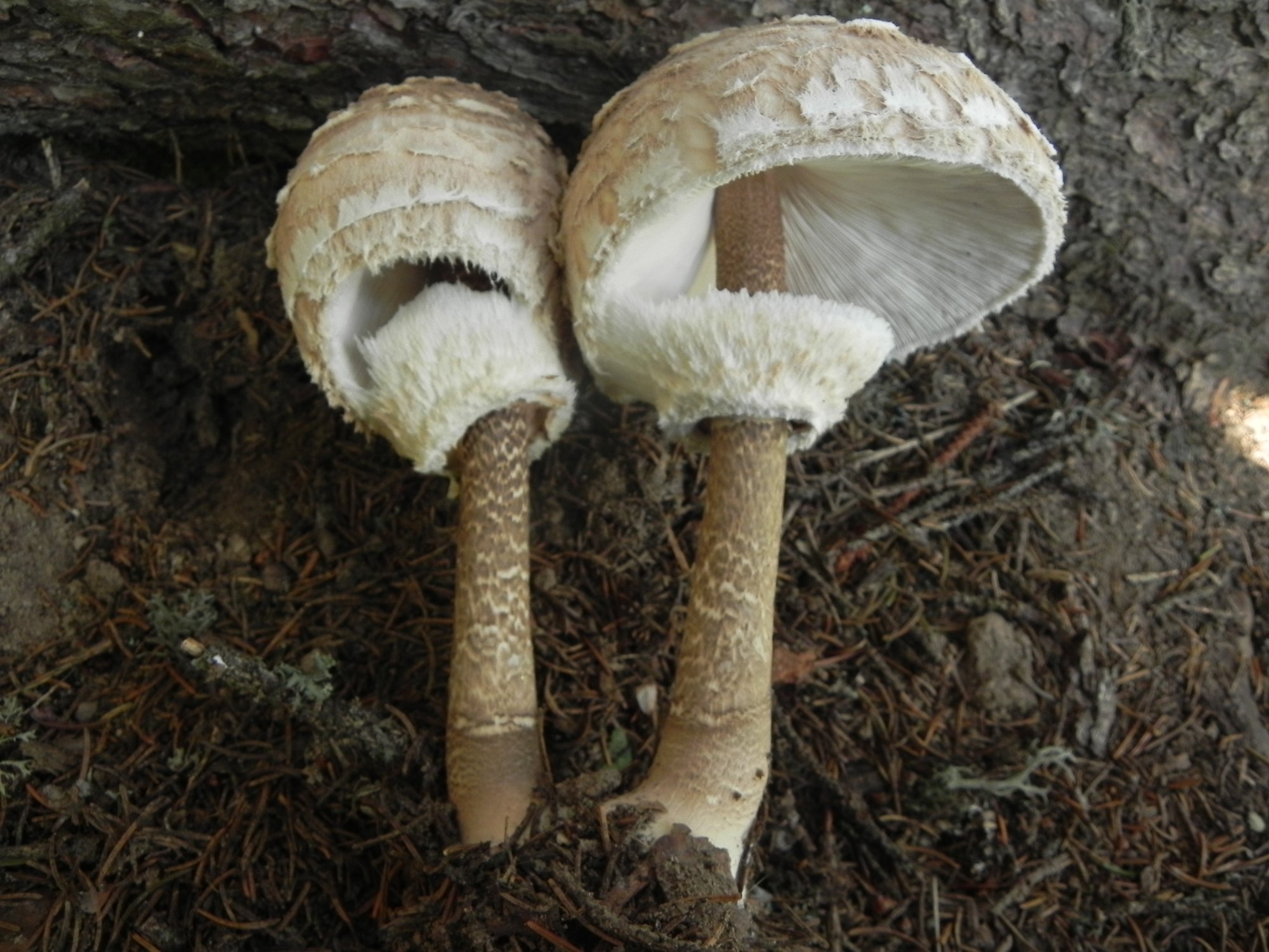 Voici des M. procera typiques, avec un pied vraiment chiné, ce qui s'appelle chiné.