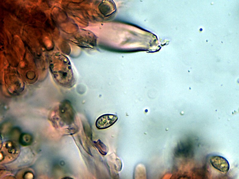 Voici d'autres photos de cystides, à différents grossissements, puisqu'il vous semble que les précédentes étaient insuffisantes.