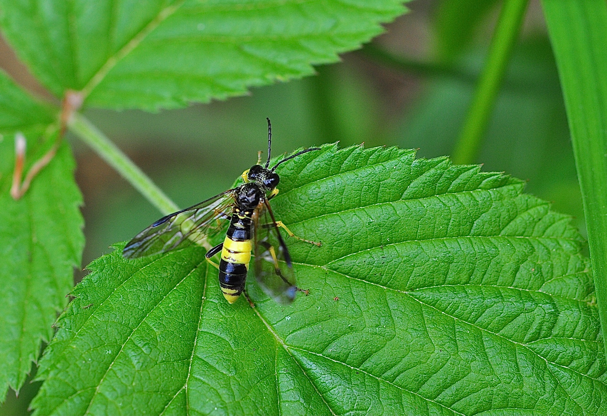 Ca ressemble en effet à un Tenthredo, peut-être Tenthredo temula mais je trouve que le 4ème tergite est très largement jaune (normalement il ne l'est que sur les côtés). Une variation n'est pas à exclure, mais je ne suis pas capable d'affirmer qu'aucune autre espèce ne ressemble à ça.