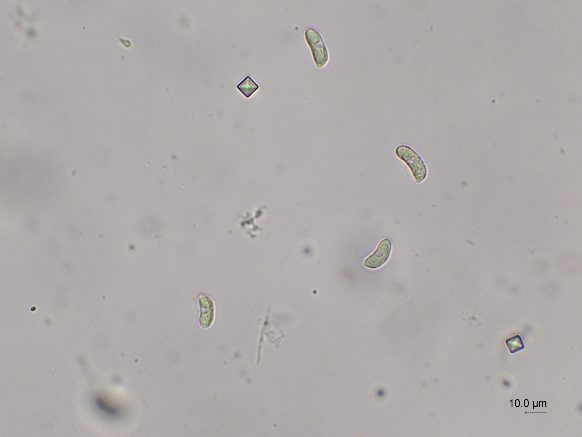 Cela ressemble bien à des spores d' Exidia dont tu n'as pas validé le genre.