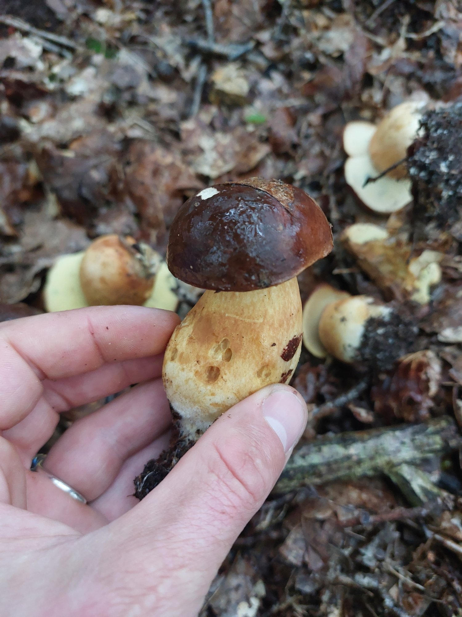 Bonjour et bienvenue, il y a un petit peu trop de photos redondantes, et il n'est absolument pas nécessaire de les prendre dans la main. Mais apparemment c'est bien le cèpe bronzé…