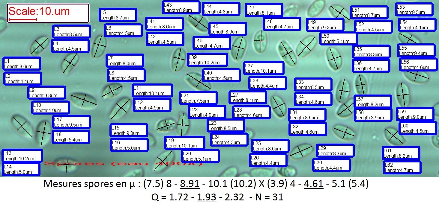 - dès le début on a vu une F. velutipes archi (ou arché-) typique au niveau macroscopique, avec un problème de support, probablement apparent (ce qui s'est confirmé), et surtout un problème de largeur de spores et donc de Q.