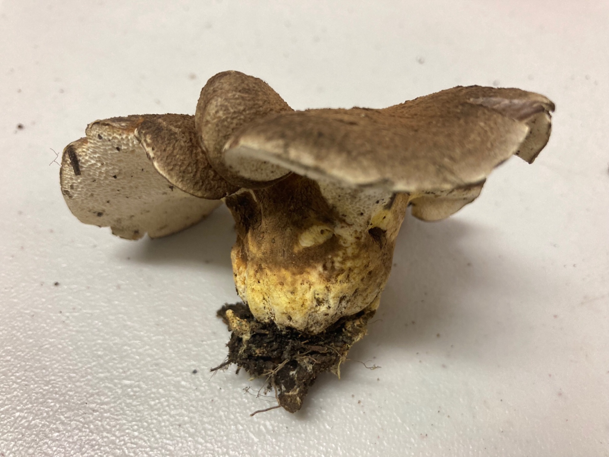 J'ai un moment hésité avec d'autres Albatrellaceae mais les pores anguleux, irréguliers et surtout larges (+/- 1 par mm) associés à des tubes très courts (2 à 3 mm) sont vraiment typiques de Scutiger pes-caprae.