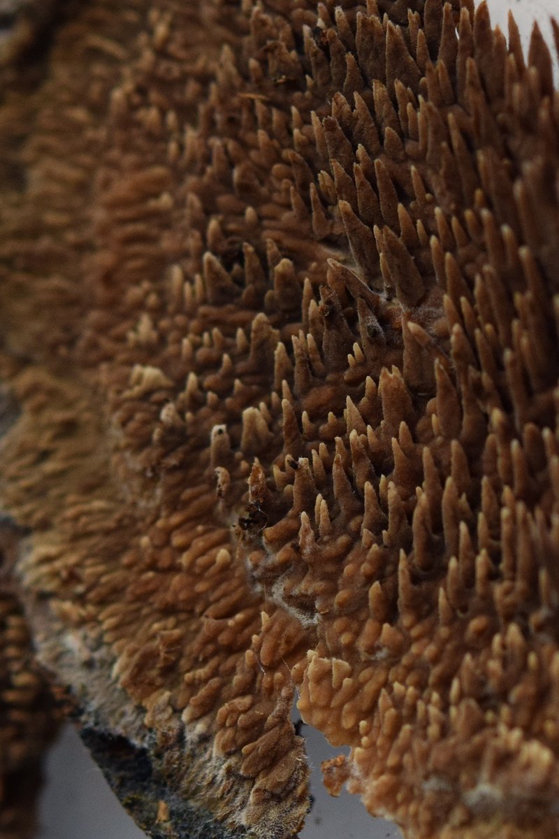 Oui; tout le monde a apparemment trouvé. J'étais parti au départ sur Mycoacia fuscoatra qui réagit en violet à la potasse mais en fait il est plus odontoïde qu'hydnoïde.