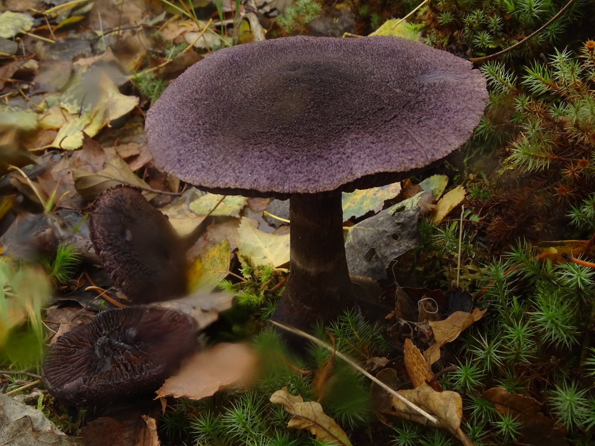 Je crois qu'on peut citer les noms. Nous avons ici Cortinarius violaceus qui vient sous feuillus. Le GEPR, entre autres, signale un sosie, Cortinarius hercynicus (originellement harcynicus) sous épicéas. MycoDB les synonymise... tout en gardant deux fiches - mais IF les distingue.