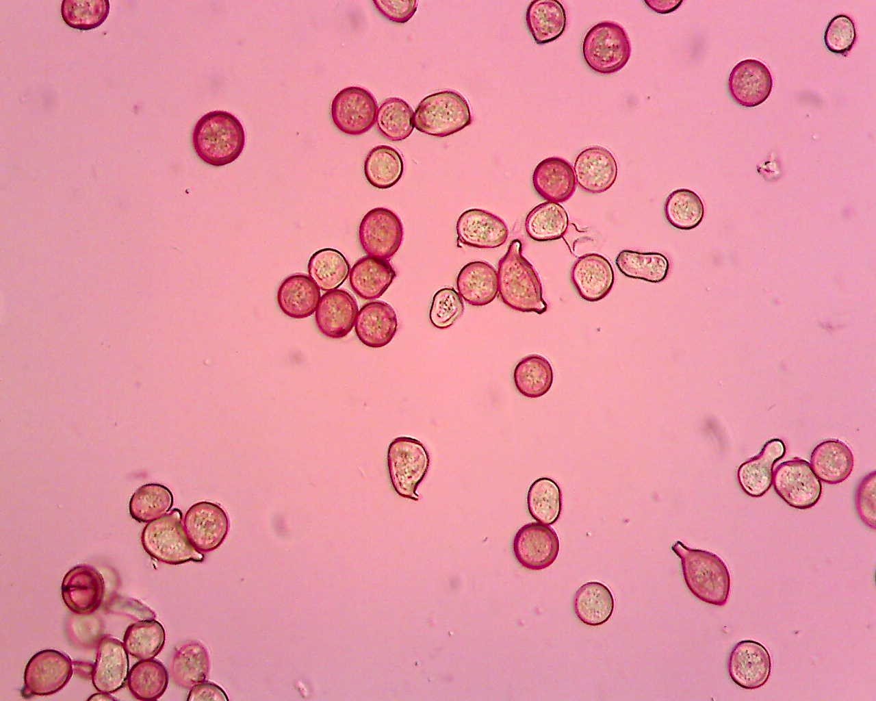 Les spores, c'est dans l'eau, sauf lorsqu'on recherche une ornementation, une réaction chimique ou encore pour faciliter les mesures lorsqu'on sait de quoi il s'agit.