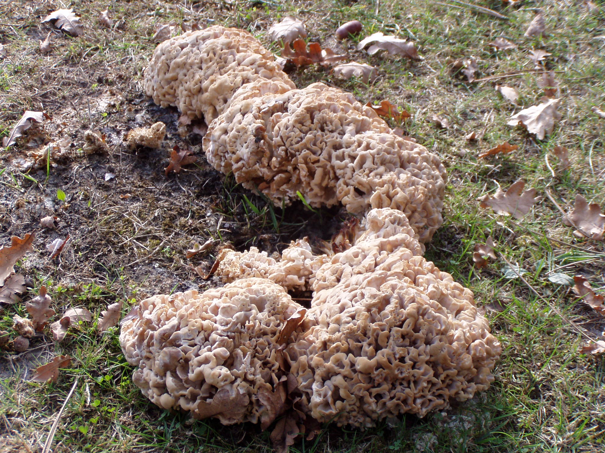 Ceci dit (écrit), à moins que la souche ne soit complètement épuisée et s'il s'agit vraiment de sparassis crispa, il aurait dû revenir cette année. Sans autre information, le mystère demeure entier et la proposition faite peut-être un peu arbitraire. En effet, sauf erreur de ma part, sp. cr. doit avoir un hôte encore en bon état (de putréfaction, bien entendu) mais hors sol.