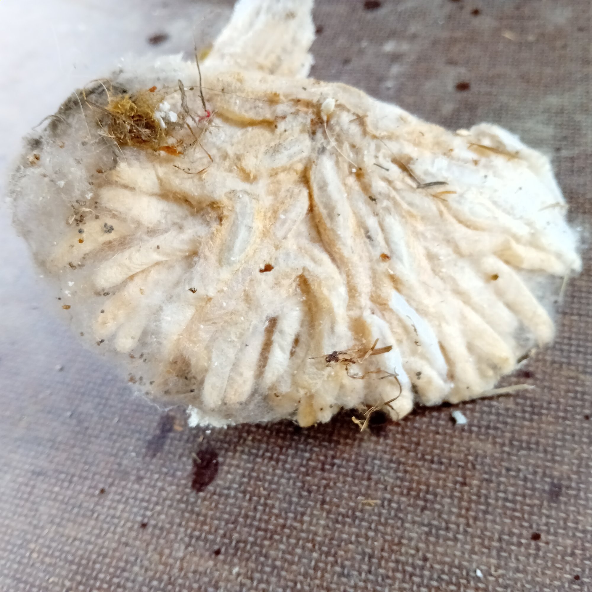 Bonjour à tous, j'ai trouvé ce qui ressemble à un champignon ou à un nid d'insecte en démontant du bardage bois sur les murs d'une maison en magus polystyrène, une partie de cet objet avait pris racine dans le polystyrène, le trou mesurais environ 3 cm de diamètre et 3-4 cm de profondeur, il y avait de très petits copeaux de polystyrène sur la base incrusté, visible sur les photos, quelqu'un a t'il déjà rencontré quelque chose de similaire ?
