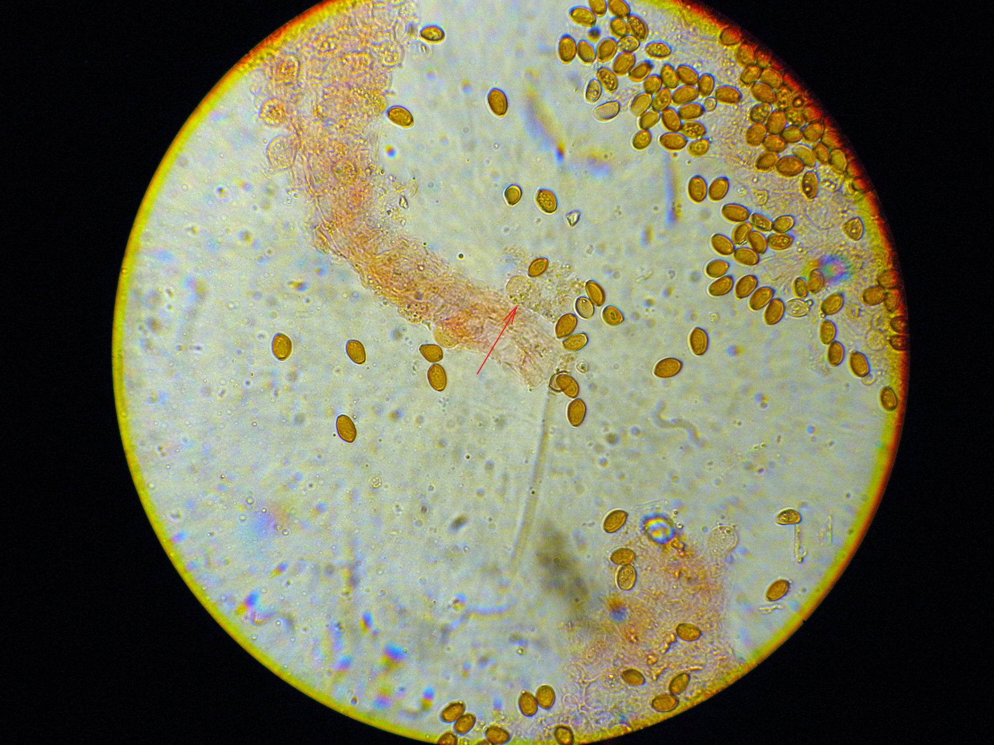 Je me suis demandé si mon champignon n'était pas acystidié, mais je pense avoir trouvé une cystide vésiculée.
