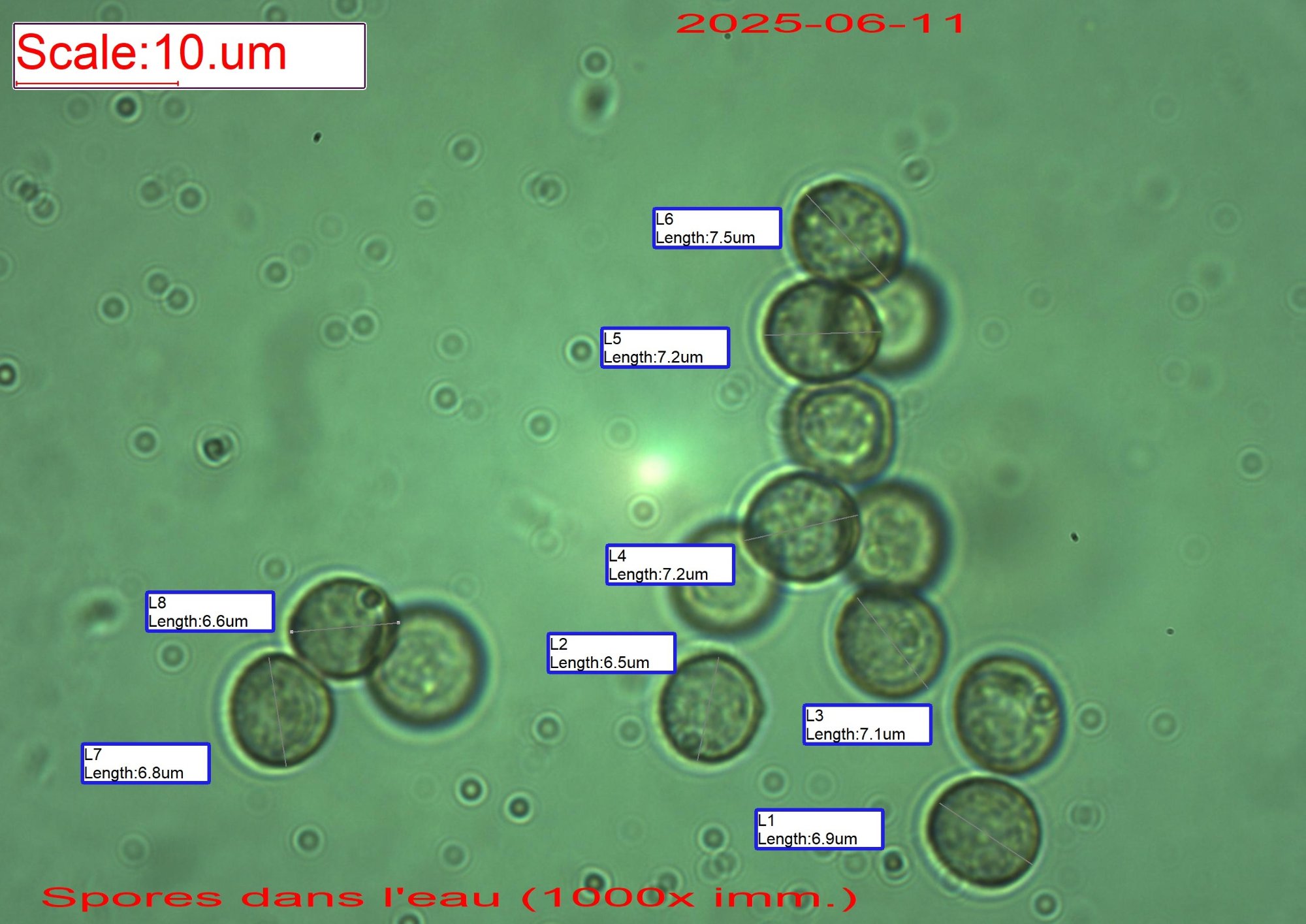 J' essaierai de refaire une mesure avec des spores sur le même plan.