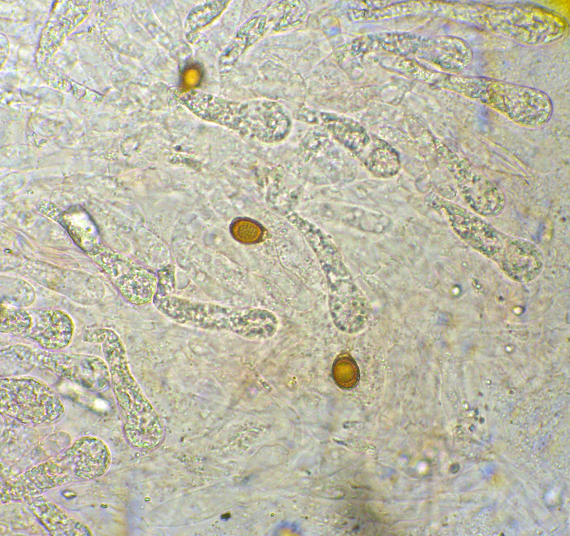 Pour les spores, les dimensions sont 10,6µm - 8µm mais je suis très surpris de leurs formes la plupart elliptiques et certaines sphéroïdes.