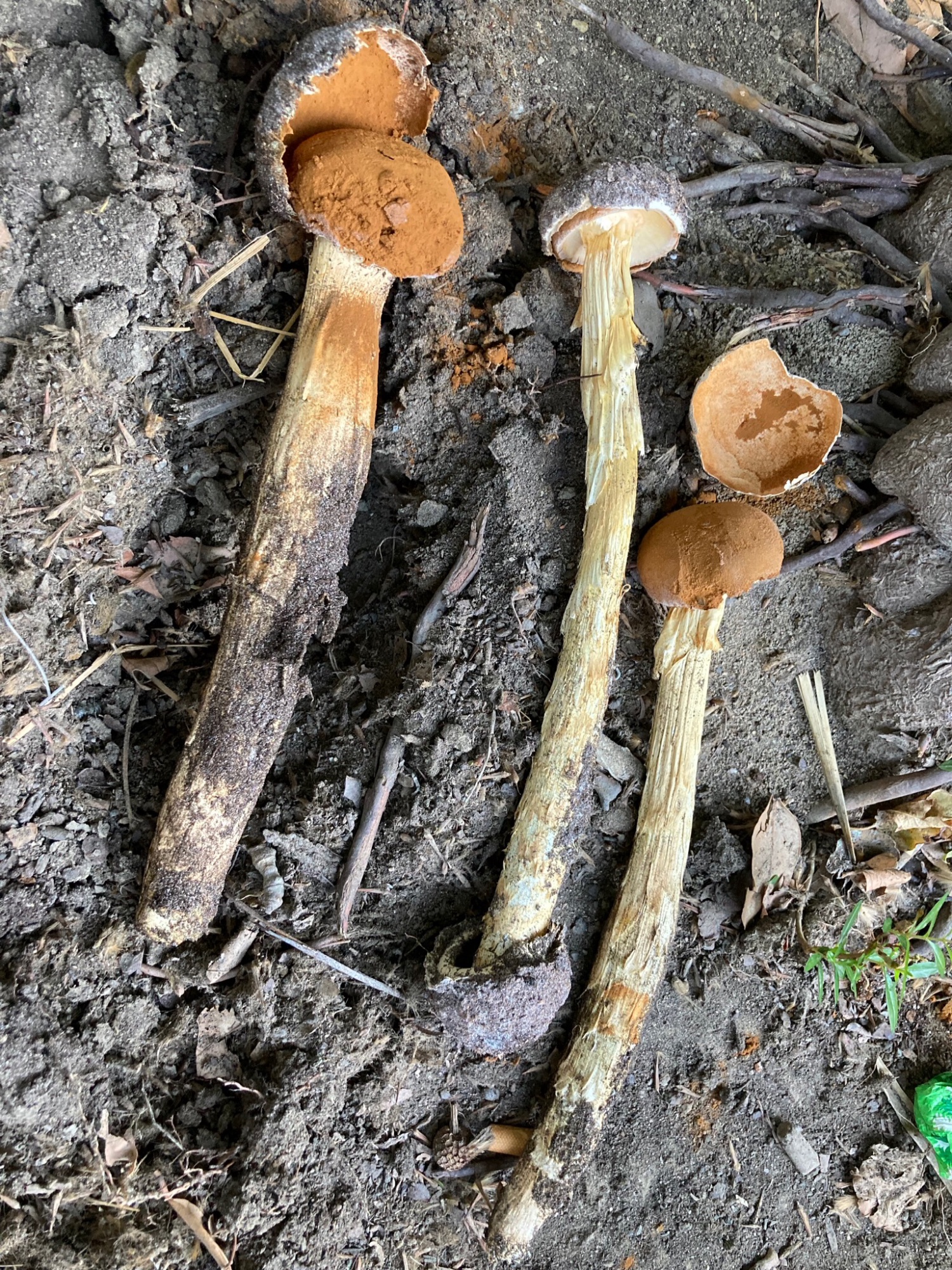 Battarrea laciniata, maintenant synonymisée avec B. phalloïdes, décrite en 1901 par Underwood a, elle aussi, été trouvée au pied d’un Yucca.