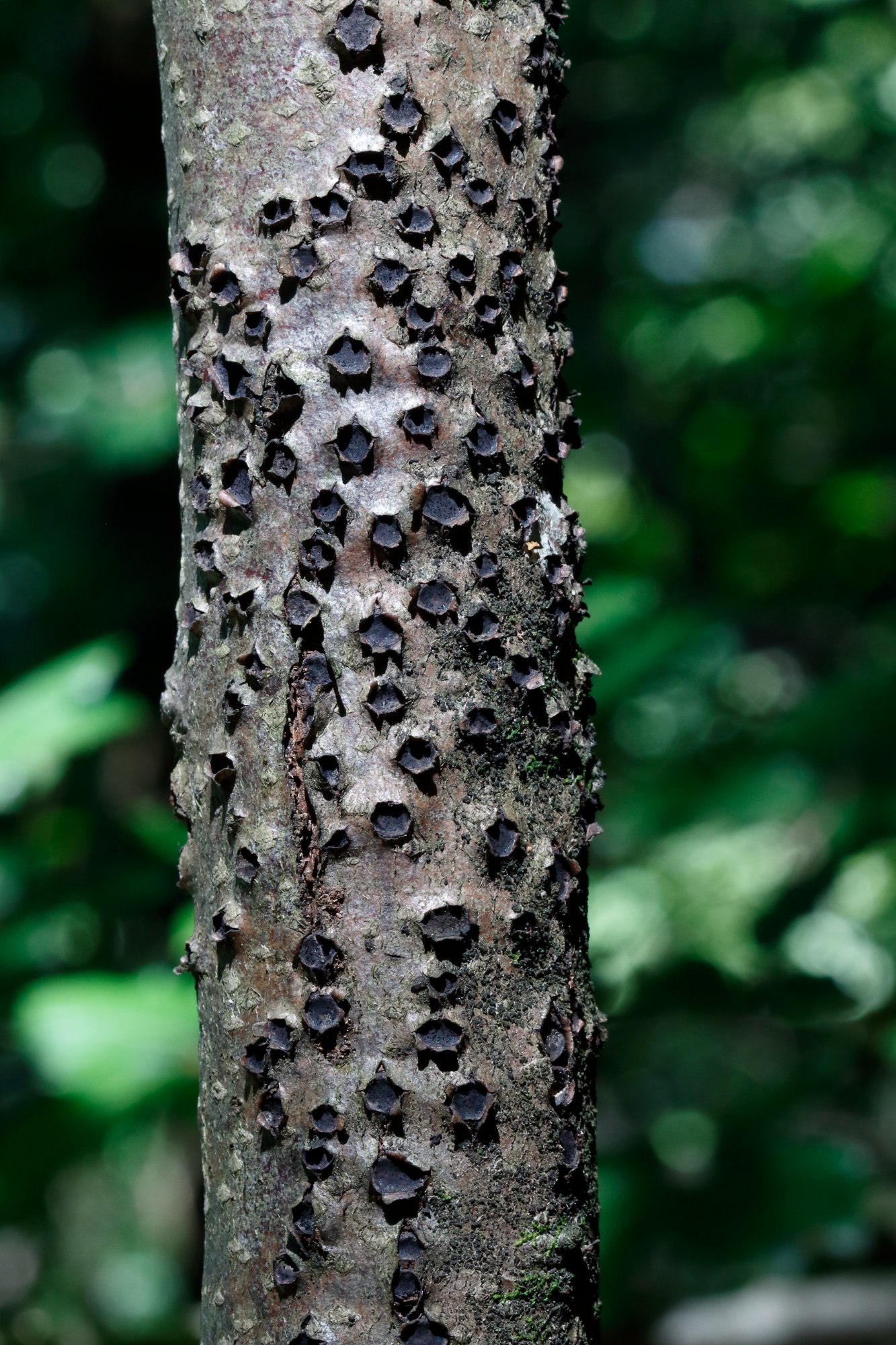 a des périthèces plutôt tubulaires ( coupe transversale) et ostioles peu apparents à la surface du stroma
