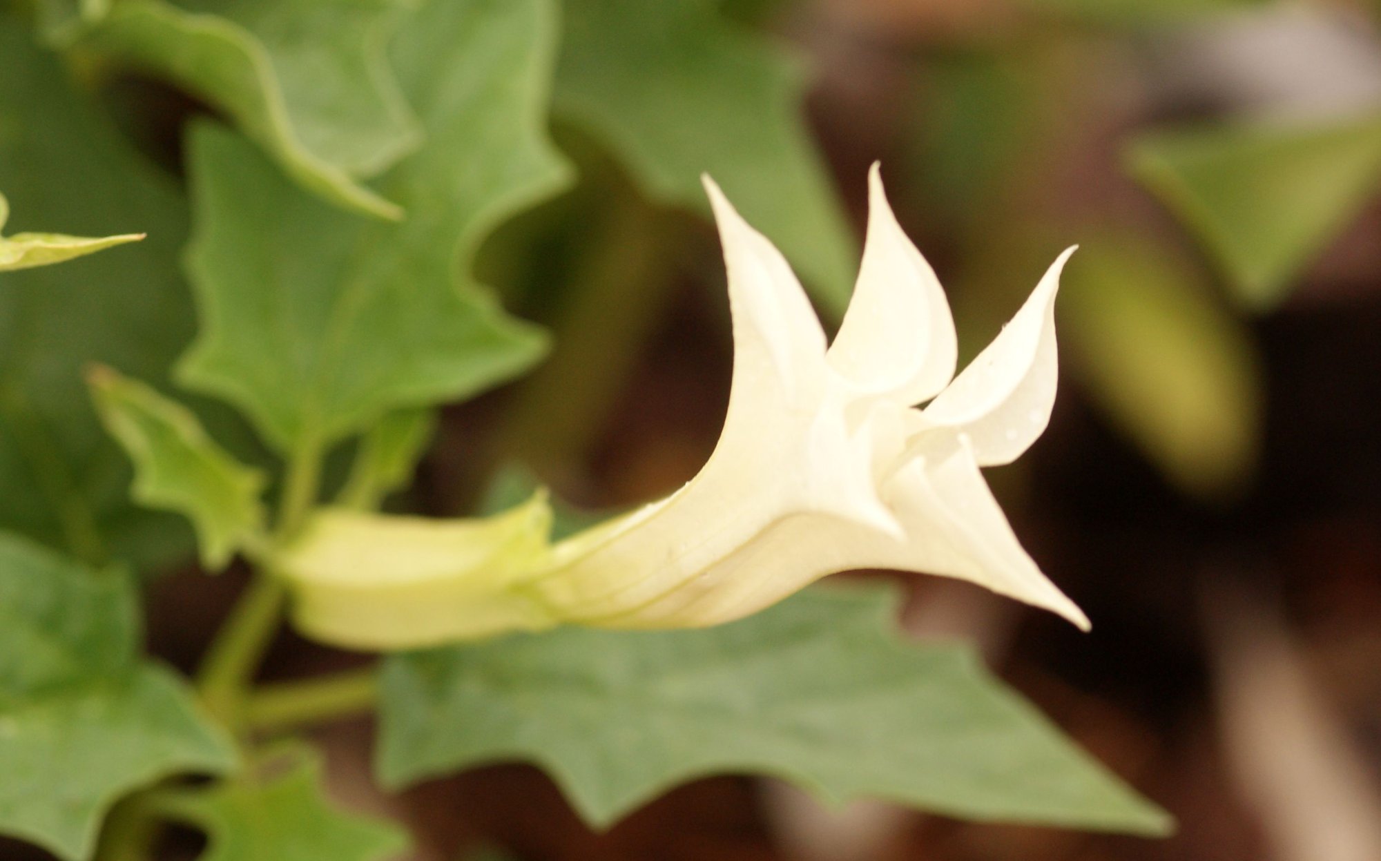 Il s'agit d'une solanacée officinale, comme Hyoscyamus niger, ou Atropa belladonna, toutes inscrites à la Pharmacopée comme l'a fort justement fait remarquer Terradoc. Ses propriétés médicinales sont dues à la présence d'un alcaloïde (mais elle en contient d'autres), la scopolamine. La scopolamine est un antagoniste des récepteurs muscariniques à l'acétylcholine, son action est périphérique, mais aussi centrale, elle occasionne somnolence, confusion et hallucinations, elle était jadis utilisée pour confectionner des potions et onguents administrés au cours de séances de magie noire et de sorcellerie, d'où la remarque de notre ami Nommo (un grand connaisseur des trames du Malin). La plante a sinistre réputation et a de nombreux surnoms comme herbe aux sorciers, ou pomme poison. De nos jours, quelques inconscients absorbent des feuilles pour ressentir les effets hallucinogènes de la plante ... pratique hautement risquée, pour ne pas dire plus. La scopolamine est parfois utilisée à des fins criminelles pour son action incapacitante et je crois qu'elle a servi également de sérum de vérité pendant la seconde guerre mondiale (un film de guerre, je crois qu'il s'agit des canons de Navarone, le mentionne). Je note personnellement que la feuille froissée dégage un odeur très douce et reconnaissable entre toutes, que je trouve agréable.