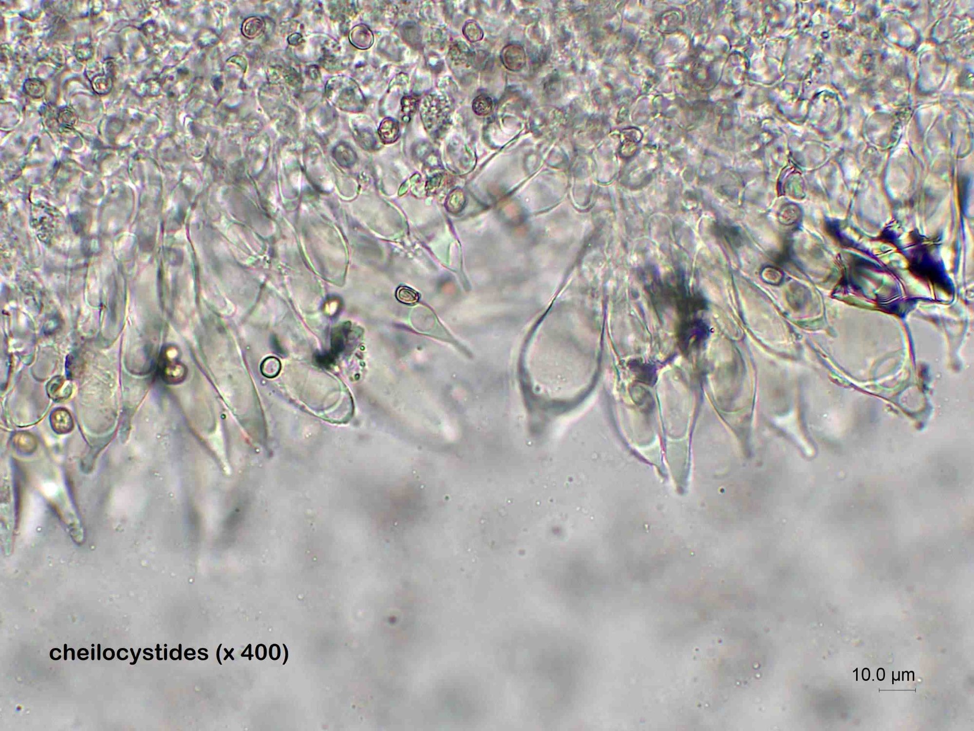 J'ai regardé par curiosité sur "Champignons de Suisse" et si je peux me permettre de donner mon avis, cuticule et cheilos OK, spores globuleuses lisses, hyalines, à parois épaisses, 6,3-9,3 x 5,6-8,3 µm; Q: 1,0-1,2; V: 201; sporée brun rouge, tout est OK même la photo