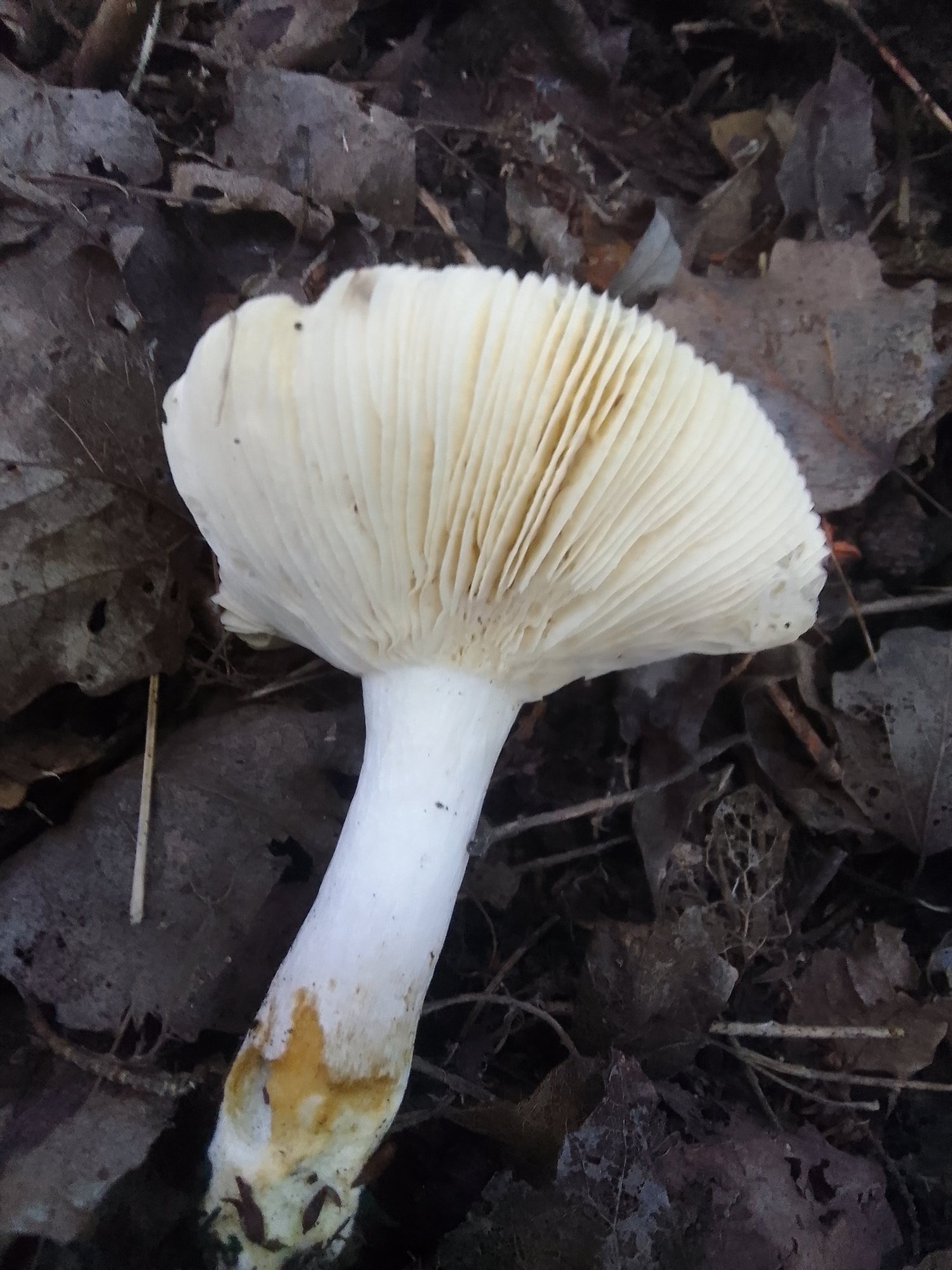 06 août 2025, 16:02Duche a écrit : J'arrive à R. laurocerasi. Qu'en pensez-vous?Qu'elle n'en a nullement l'aspect (chapeau ocre, visqueux au début, cannelé à la marge, lames tachées de noir, pied blanc taché de brun) mais le spécialiste des russules, ce n'est pas moi