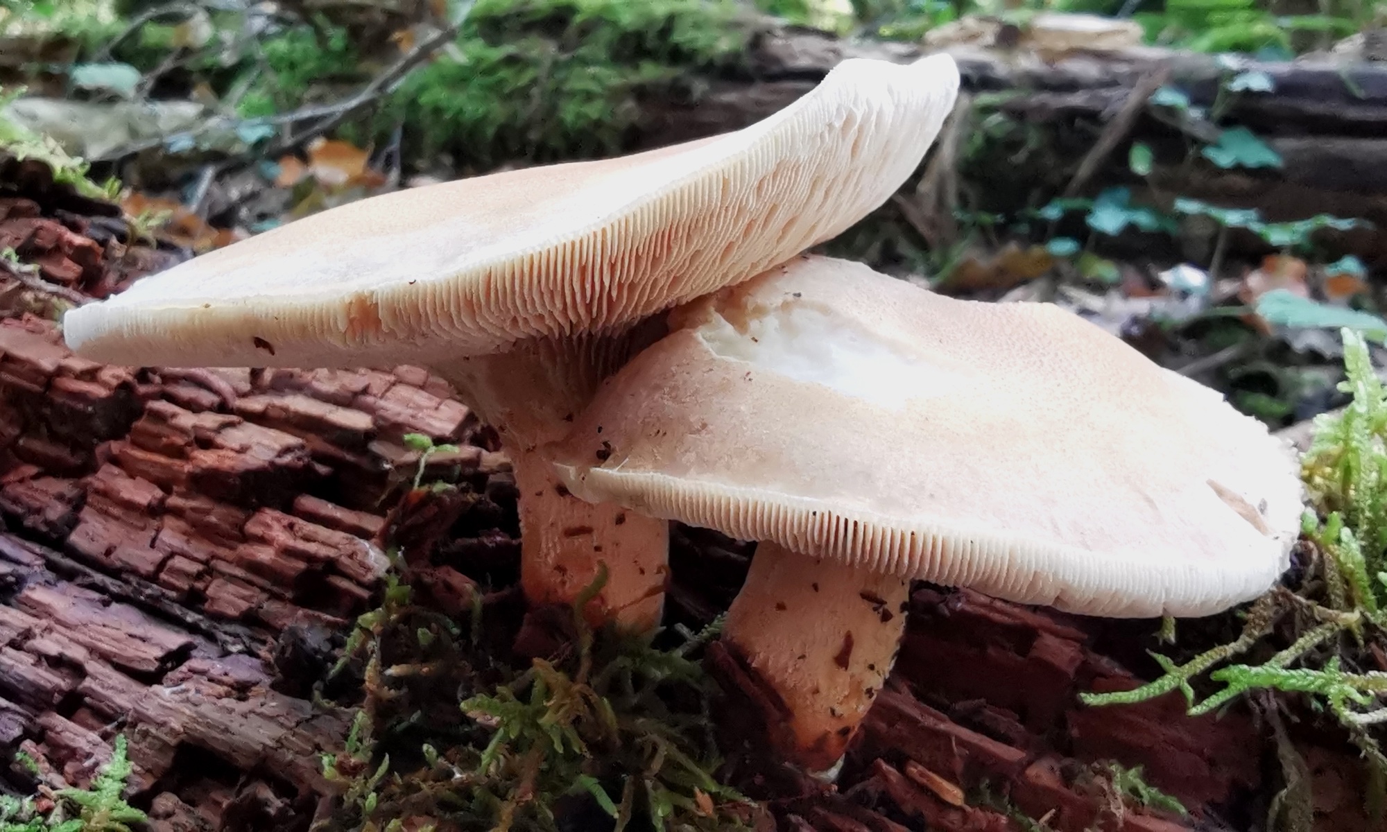 Je vous présente cette espèce prise en photo tout à l'heure sur un arbre tombé, probablement de feuillu, très dégradé. Altitude 400 m environ. C'est quasiment le seul champignon que j'ai observé dans cette forêt où je vais depuis près de 50 ans… Apparemment, les pluies des derniers jours n'ont pas suffi. Je pense à Neolentinus schaefferi (espèce qui a changé de nom plusieurs fois). Vous me pardonnerez la qualité des photos, prises avec mon smartphone. Je n'ai pas jugé utile de sortir le réflex pour ça… Merci pour vos avis!