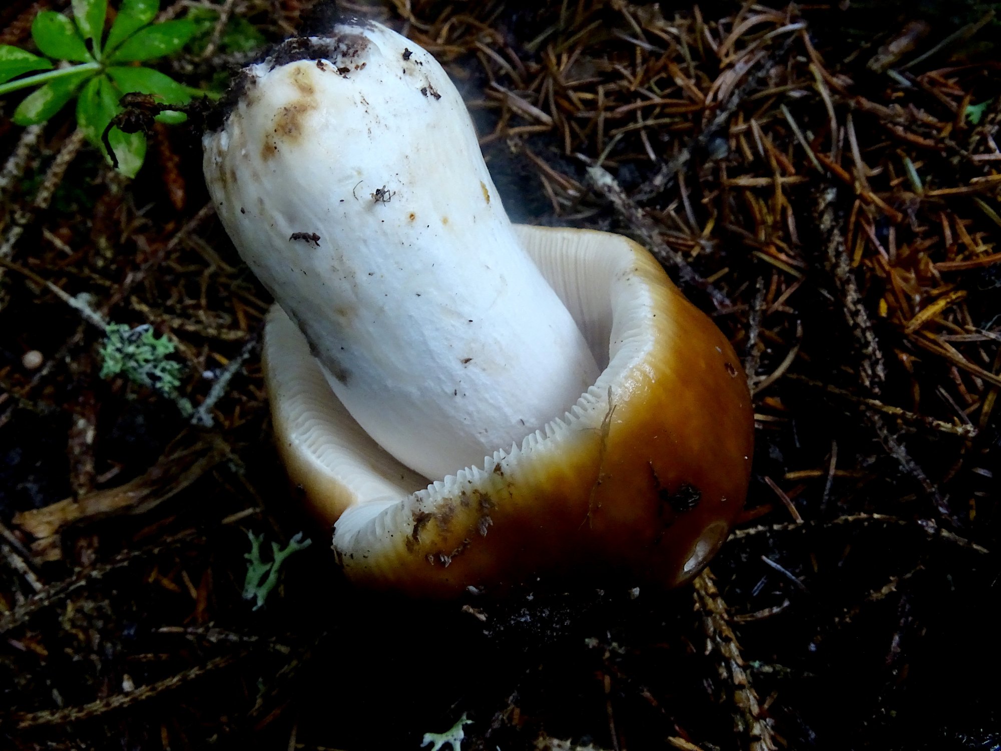 Une des Russules en bon état. Très nombreuses autres Russules, mais complètement décomposées.