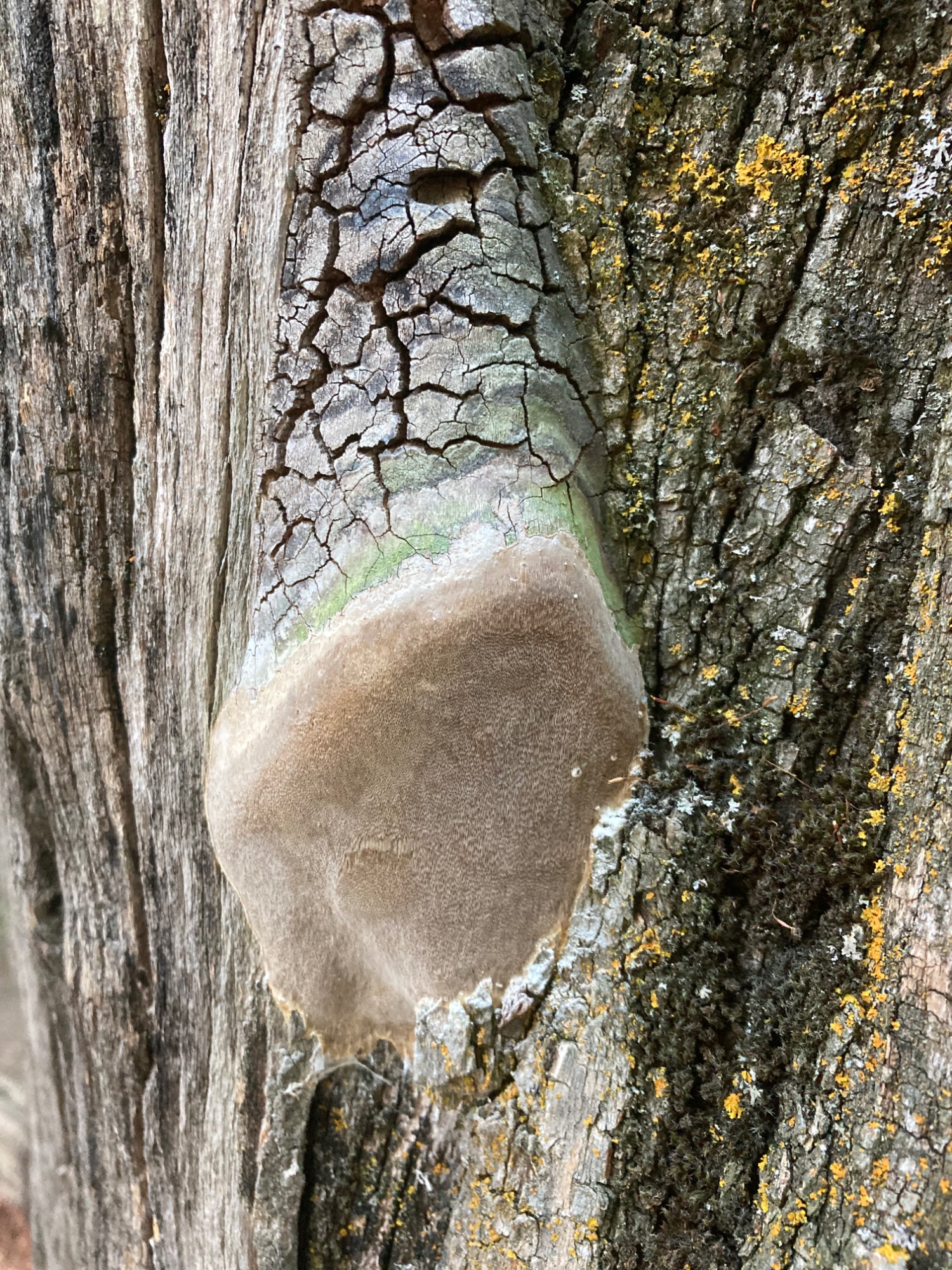 Bonjour, j'ai trouvé cette espèce à tête de Phellin sur un arbre mort dans un terrain de pétanque, il n'y avait que des marronniers mais l'écorce de celui-ci a l'air différente, je n'arrive pas a identifier l'arbre à ce stade, quelqu'un a une idée ? Et pour le champignon je pense sans conviction à Fomitiporia punctata mais sans l'essence je n'y crois pas trop. Il y a plusieurs exemplaires sur le tronc et tous sont très résupinés, seulement un se détachant à peine un peu.