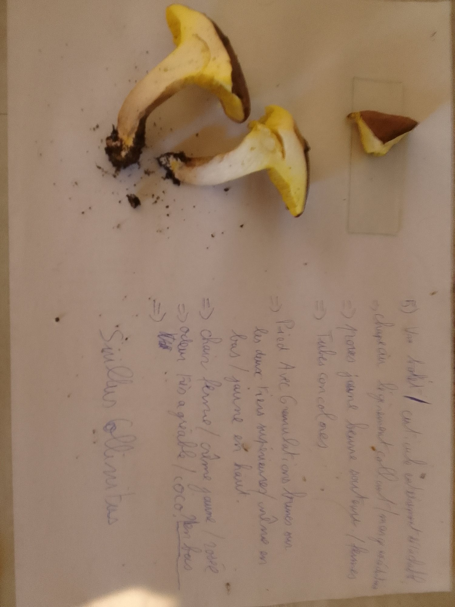 S'il y a des pins - tu mentionnes un Suillus dans les parages - alors la piste lateritium à odeur gourmande est probable. En tout cas, le fait d'écarter l'odeur de radis, cela aide pas mal.