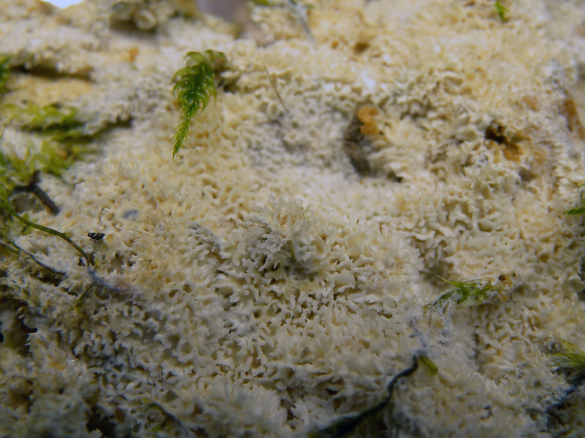 Sans être un spécialiste, cela m'évoque plutôt un Myxomycète qu'un polypore.