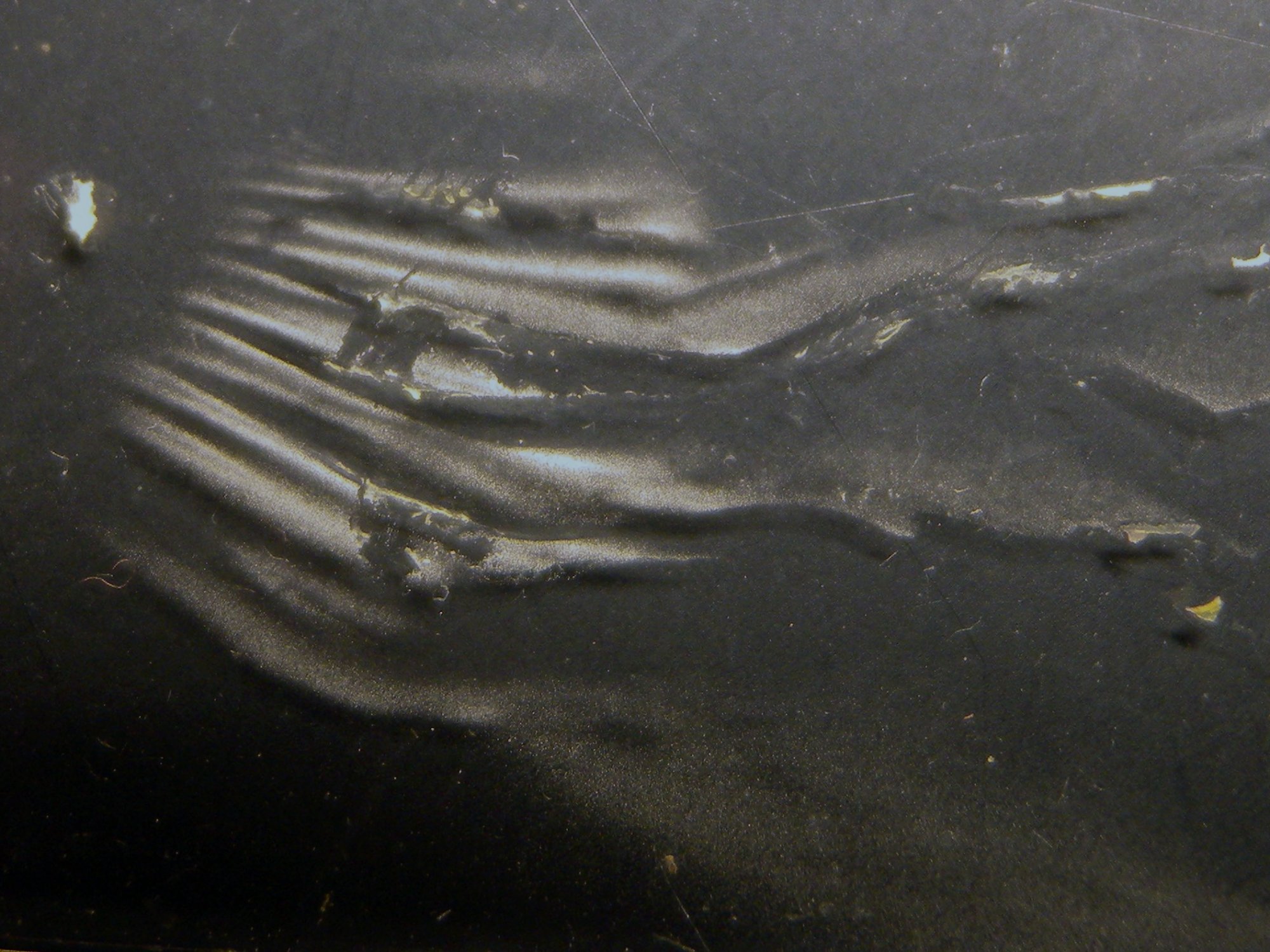 Les restes de voile sur le chapeau sont bien grisâtres et irréguliers ?