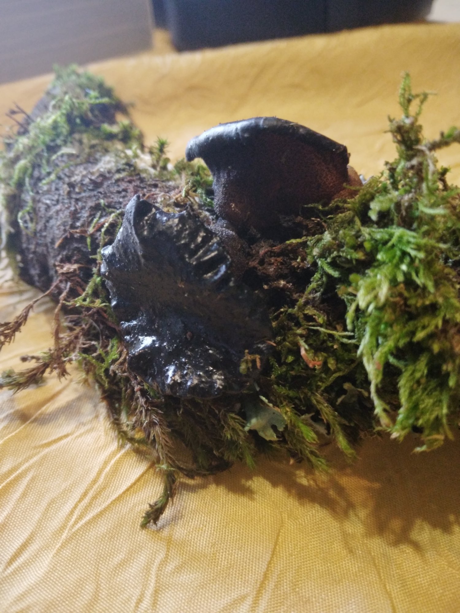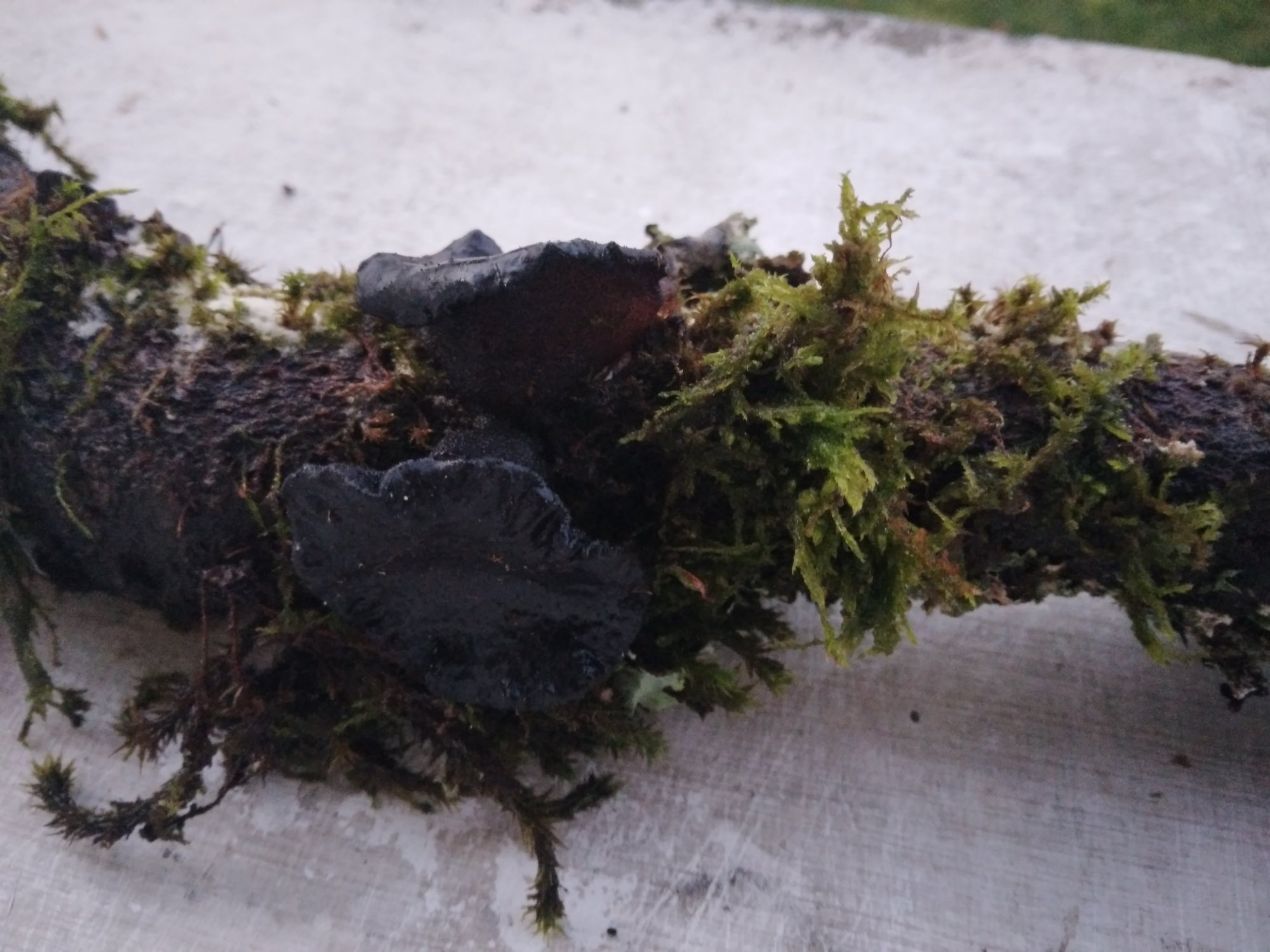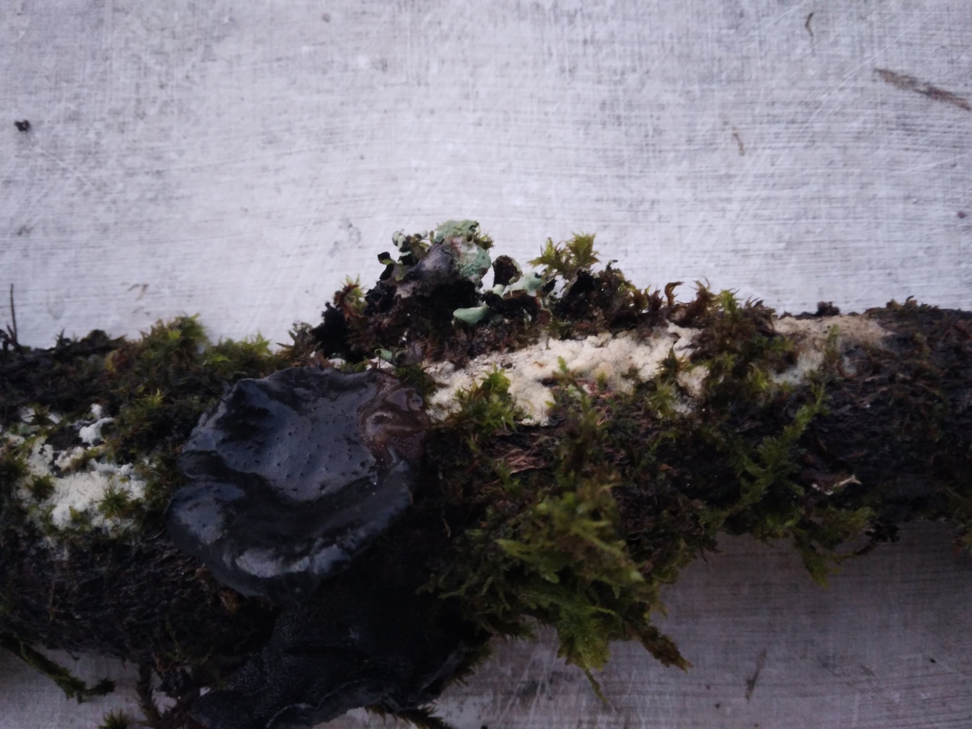 une petite toupie gélatineuse toute noire qui ne tache pas (donc pas Bulgaria inquinans ?), de forme très typique et sur branche de chêne.