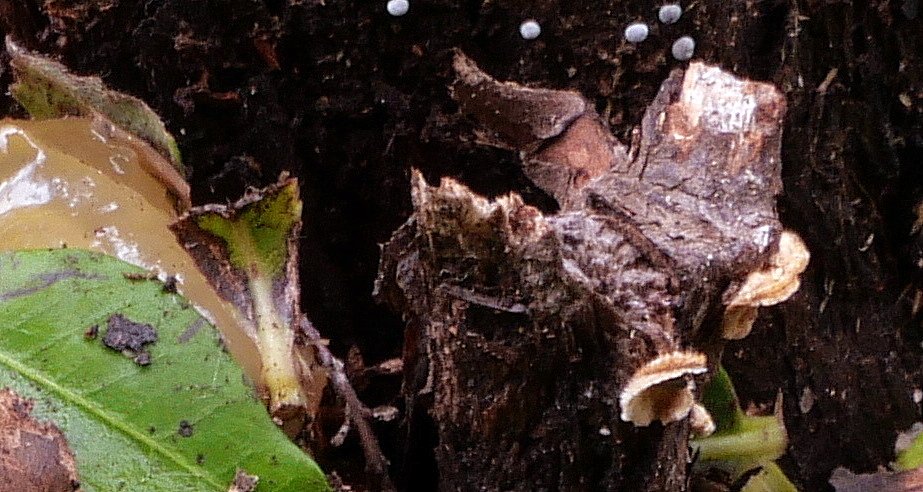 Tant mieux qu'il ait été question de Tremella sur le forum, ça m'a fait ressortir cette photo, j'étais quasiment sûr que c'était aurantia d'après la quantité de stérées dans ce coin mais c'est dans le cours du QSJ que j'ai découvert sur la photo qu'il y en avait à quelques centimètres !