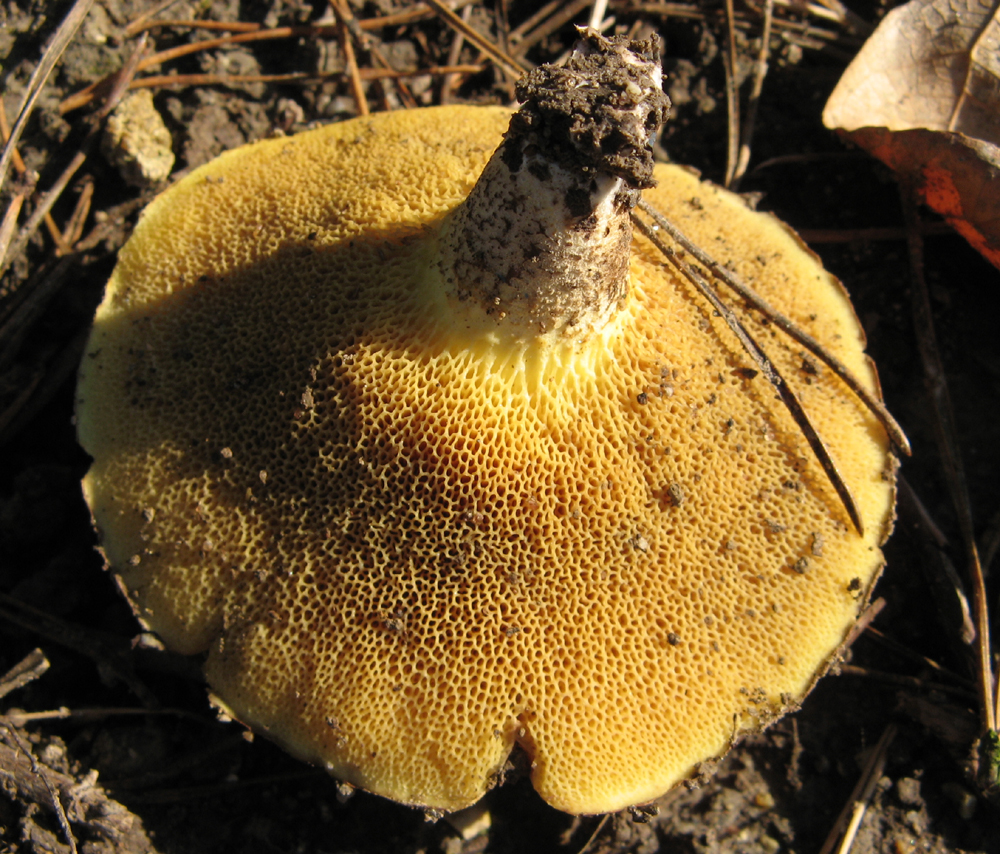 Je voudrais juste repréciser que les stipes des deux champignons (à mon avis de la même espèce quand même) sont franchement différents. Les Bolet granuleux que j'ai trouvé chez moi, se trouvaient dans le bois sous pins sylvestres et les exemplaires, même âgés, n'avaient pas franchement cette tête là...