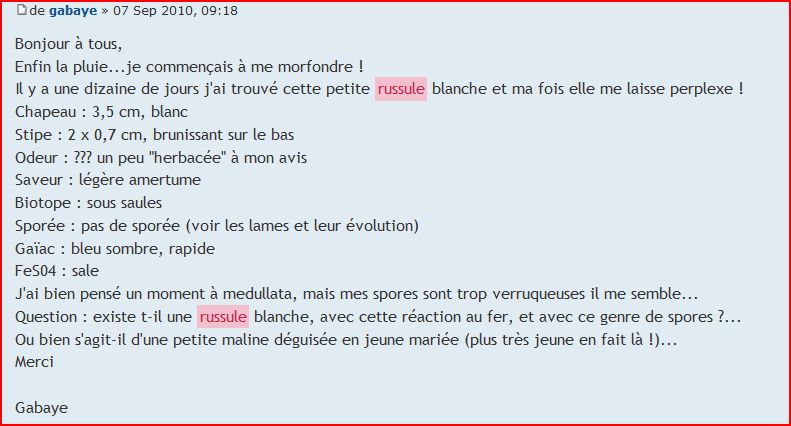 Je ne peu pas citer tout les post agréables voici un de Gabaye dernièrement. Bref du bon travail, et c'est comme cela que l'on bosse. Mais il est vrai que rédiger une telle fiche demande avant tout une certaine pratique et connaissance, du temps, etc...D’où les questions à choix multiples proposé et non obligatoires bien sur. et évite surtout d'être "dispersé", il incite également d'utiliser le bon vocabulaire mycologique et scientifique, et plus de remontrance orthographique pour ceux qui ont la tête dans les étoile (comme moi ;).